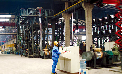 六條連續(xù)帶鋼熱鍍鋅生產(chǎn)機(jī)組具有優(yōu)質(zhì)、高效、低耗的生產(chǎn)特點(diǎn)。年產(chǎn)量80萬(wàn)噸,生產(chǎn)線工藝段速度Max80m/min,可生產(chǎn)厚度0.7-3.0mm、寬度355-730mm系列規(guī)格冷/熱軋鍍鋅板卷。產(chǎn)品品種覆蓋08AL,Q235,Q195,Q215,Q345B的常規(guī)鋅花、小鋅花,鋅層厚度30-300g/m3,拉矯、耐指紋、鈍化及涂油等產(chǎn)品。