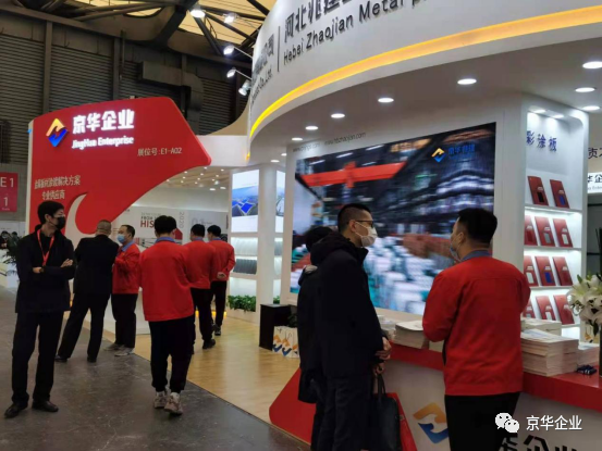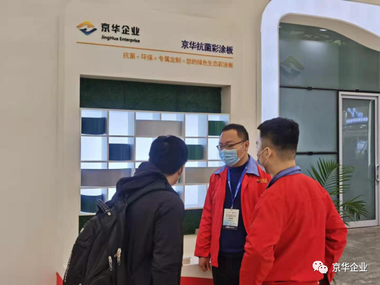 展覽會上各界人士紛至沓來,京華兆建作為金屬板材涂鍍解決方案專業(yè)供應商,在展位上部署了專業(yè)的工作人員,為來往人員進行耐心詳盡地講解,并展示高端彩涂板系列產(chǎn)品樣板。京華兆建的生產(chǎn)產(chǎn)品涵蓋精品冷軋板、熱鍍鋅板、熱鍍鋁鋅板、高強結構鋼板、建筑彩涂板、京華精品板、高端彩涂板、醫(yī)院用抗菌彩涂板、畜牧業(yè)用彩涂板、凈化板、家電用彩涂板等多個領域。展位E1-A02上包括且不僅限于氟碳彩涂板、抗菌彩涂板、高耐候彩涂板等擁有科技專利的高端彩涂板呈現(xiàn)。