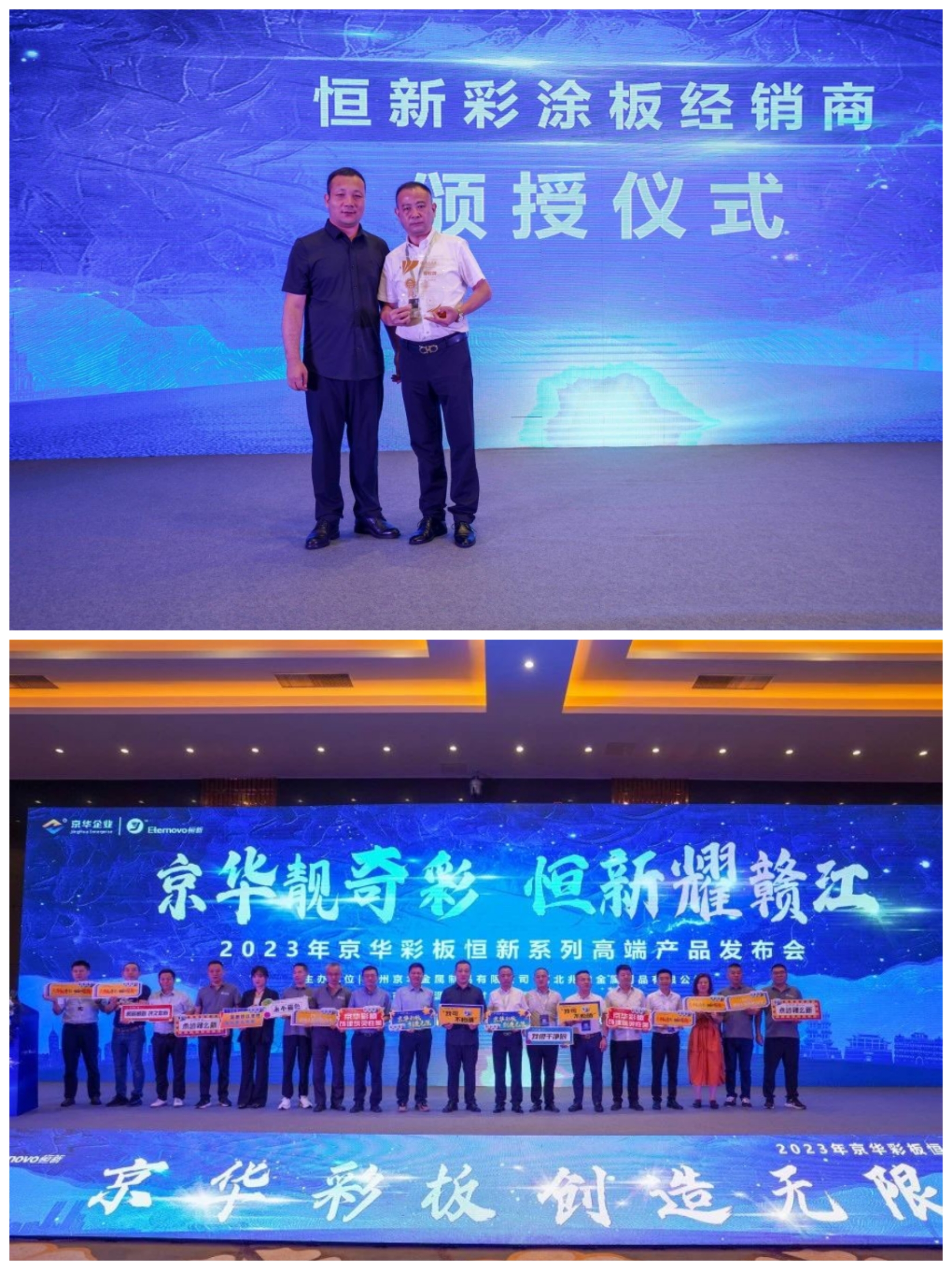 盛世良辰興大業(yè),鵬程萬里更輝煌!2023年8月12日,京華企業(yè)聯(lián)合南昌地區(qū)鋼鐵行業(yè)合作伙伴赴南昌瑞頤大酒店,舉行“京華靚奇彩,恒新耀贛江”恒新系列彩涂板產(chǎn)品推介會,共同見證新技術、新材料和新產(chǎn)品的亮相,促進與鋼鐵合作伙伴全方位、多元化、深度合作,共同開創(chuàng)鋼鐵行業(yè)發(fā)展新局面。
